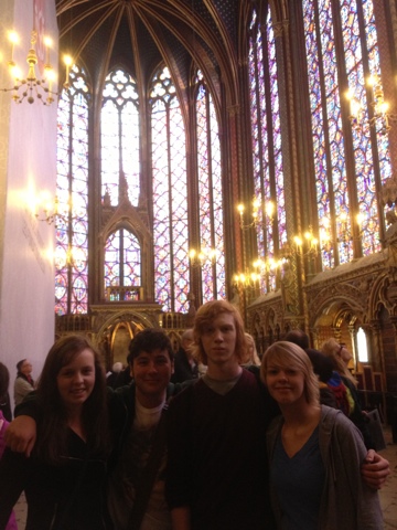 Then we went back to Notre-Dame to hike up 200 spiral stairs to the top, and just a few more to the top of one of the bell towers. We were up there as Quasimodo was ringing the bells for 1:30 but no sightings of him as far as I know. By the way, this year marks Notre-Dame's 850th birthday so they just got beautiful, new, shiny bells earlier this year. To celebrate our conquering the steps of Notre-Dame, we treated ourselves to Berthillon ice cream, the best in the city. Some of us were as adventurous to try rose-raspberry ice cream... Definitely a bit perfume-y...